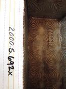 STARBURST OVENEX LOAF PAN. Metal with a repeating pattern all around of a circle with rays coming out of it. This pattern is pressed into the metal. Inside the bottom of each pan is raised lettering that reads, "OVENEX N 2 7 5/8" U.S.A." EKCO started making Ovenex baking pans in 1945 and continued for 20 years. Ekco company started in 1903 making military boxes. First mess kit issued to World War I was made by Ekco. (answers.com; what is the history of Ekco's ovenex baking pans? Liz B.