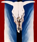 Whitney Archive indicates, "See Gallery photograph. . . . Infor. from Miss Bry (An Amer. Place), July 1949: On permanent loan to the Metropolitan Museum of Art from Georgia O'Keeffe as part of the Alfred Stieglitz Coll." Pictured in 1931–32 New York (An American Place) Stieglitz installation photograph, see Appendix III, figure 51. O'Keeffe wrote: 'I painted a horse's skull –– then another . . . and then another. . . . After that came a cow's skull on blue. . . . As I was working I thought of the city men I had been seeing in the East. They talked so often of writing the Great American Novel –– the Great American Play –– the Great American Poetry. . . . So as I painted along on my cow's skull on blue I thought to myself, 'I'll make it an American painting. They will not think it great with the red stripes down the sides –– Red, White and Blue –– but they will notice it'' (Georgia O'Keeffe [1976], unpaginated, text accompanying entry 58). Reproduced and titled Death and Transformation in New York Sun (January 1932); Life and Transformation in The Springfield Sunday Union and Republican (January 1932). These titles were assigned by Stieglitz. (Source: Lynes, 1999)